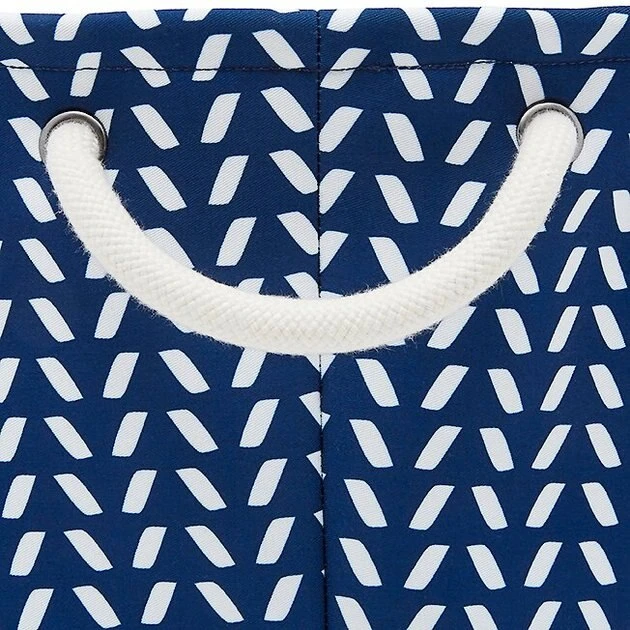 Post-playtime messiness? Pick up a Frisco collapsible storage bin and say goodbye to the days of pet toy piles and stepping on random squeakers! This round toy bin keeps all their toys in one place so you’ll always know where their cuddly plushies, favorite ball or squeaky toys are (when they aren’t carrying them all around the house, of course), and you’ll always have a convenient spot to start those long, fun play sessions, whether your pet barks or purrs. Plus, it’s covered in stylish navy herringbone polyester fabric so it will look great in your home, and it features nifty rope handles attached so it’s easy to carry around at cleanup time!