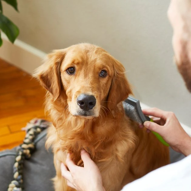 Brush dog’s coat in small, swift motions following the direction of their hair root to tip. Transition into longer strokes once you are sure that all tangles are gone.