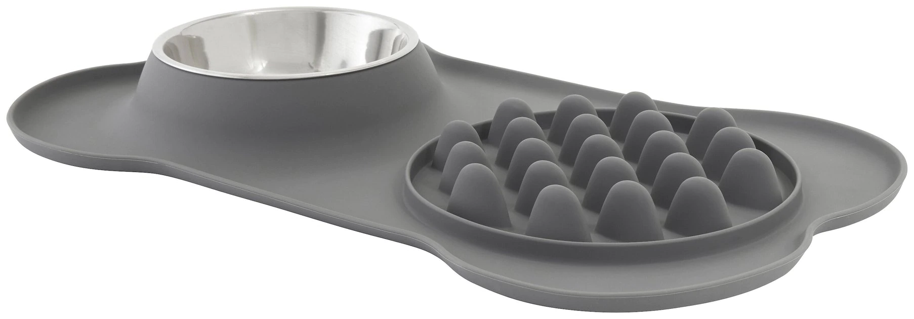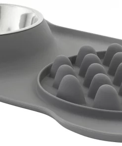 - One side is a slow feeder and the other is a removable stainless steel bowl.