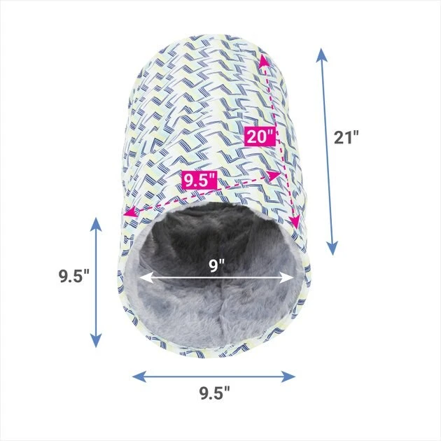 Give your small pet the perfect place to get playtime on a roll. This pet tunnel levels up the fun with an enticing crinkle material that your furry one is sure to love. Tunneling, hiding, lounging. Yup, bring on all their favorite critter extracurriculars. When your pet isnโt having a blast, you can fold this tunnel flat for easy storage.
