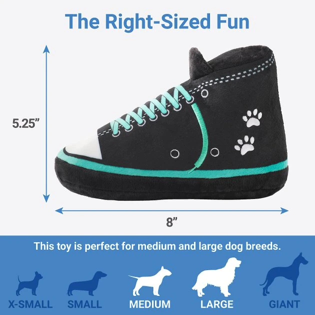 With these cool kicks, your pal will be the coolest pup in class, no doubt. Thatโs because these sneakers have squeakers! So bring them out for all your dogโs favorite after-school games to really kick up the fun. With soft Velboa plush, these toys are also perfect for cuddling up with for a little recess nap.
