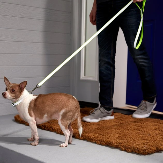 The Frisco Solid Reflective Dog Leash reflects ambient light to increase visibility in low-light conditions. That means added safety during those evening walks. Whether you’re headed to a doggie playdate or just adventuring around the block, this leash will keep your pup close by your side. It’s made with high-quality polyester webbing that’s durable enough for everyday walks, with an easy-to-use bolt snap that securely attaches to any collar or harness. Staying in control will feel effortless with the handy loop that’s easy to grip, and the nickel-coated hardware gives it a polished look. Plus, get the matching reflective collar from Frisco to complete the look.
