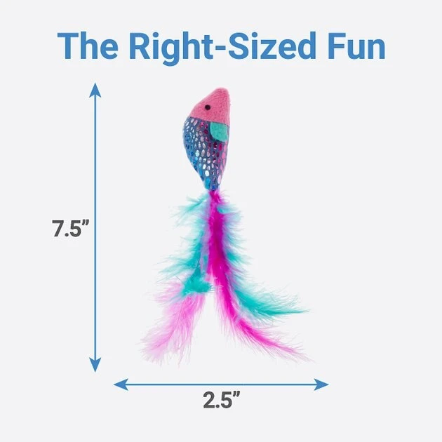 - The enticing feathers and shiny โscalesโ activate your catโs natural instinct to play.