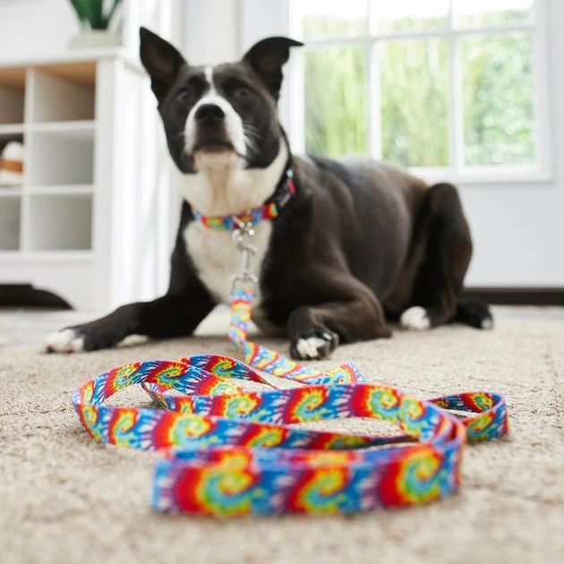 - Fun, tie dye design adds a little bit of far-out cuteness to all your walks together.