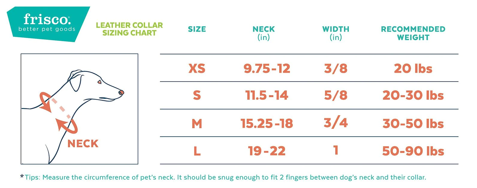 Remember to measure your pet for the paw-fect fit. Give your dog a timeless and natural look with the Frisco Top Grain Leather Collar. Handcrafted with durable Latigo leather, this collar is designed to withstand weathering and wear in all outdoor climates. It’s rich coloring and natural look only gets more beautiful over time, Plus, the more your dog wears it, the more supple and comfortable it becomes. For a refined yet natural look, style your dog in the Frisco Top Grain leather Collar.