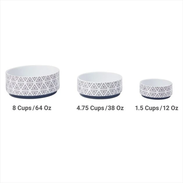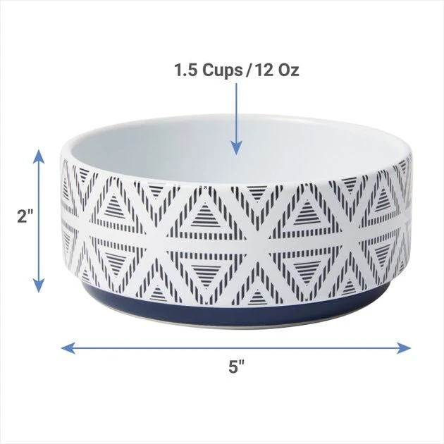 Elevate your doggie dinnerware with the Frisco Tribal Aztec Non-Skid Ceramic Dog Bowl! This bowl features a geometric, Aztec-inspired pattern that adds some cool texture to your home décor. Have an excited eater who tends to make a bit of a mess at mealtime? No problem! This bowl has a non-skid bottom to help hold the bowl in place to cut down on tips and spills. Plus, it’s available in three sizes, so you can find the best bowl to fit your pet’s appetite.