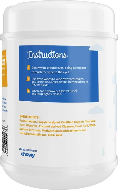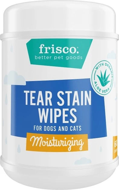 - Comes with a 60-count tub of Frisco Moisturizing Tear Stain Wipes with Organic Aloe for Dogs & Cats and a four-ounce bottle of Vet’s Best Waterless Cat Bath.