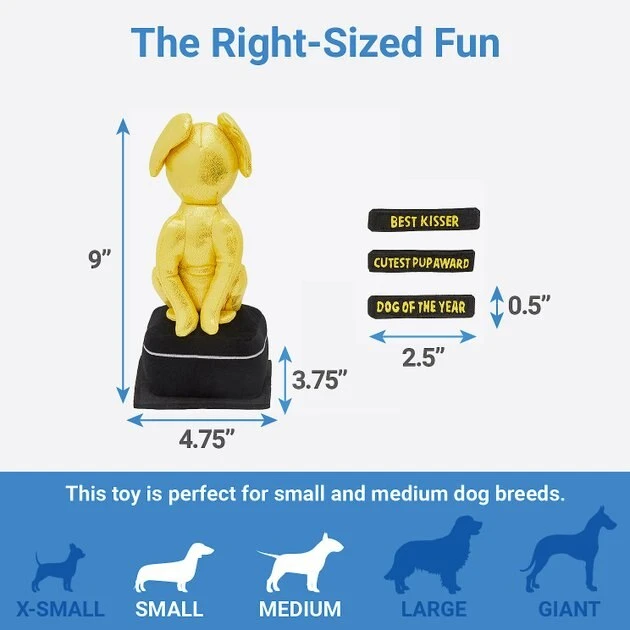 - Movie award style plush trophy toy so your dog can feel like a Hollywoof celeb.