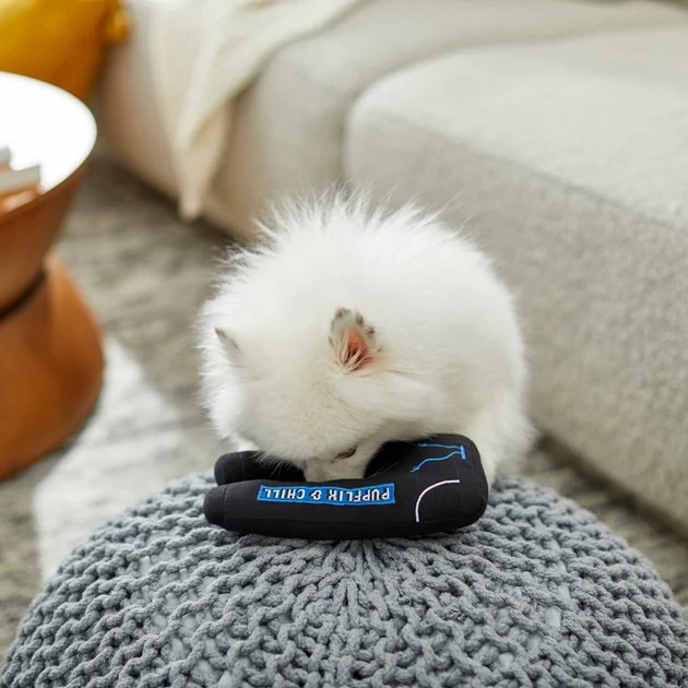 Now your pup can have their own pair of sweatpants for movie night too! This sweatpants plush squeaky toy is perfect for a game of fetch, plus it features a built-in squeaker for extra excitement. The leg of the sweatpants reads โPupflix & Chillโ so your pup can rep their favorite vibe whether theyโre playing or lounging.